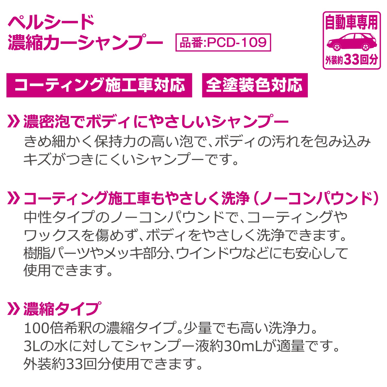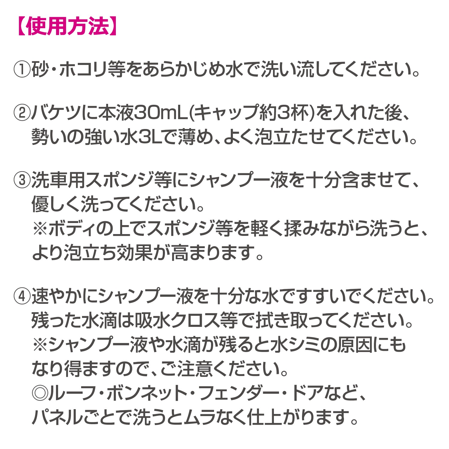 - 製品特徴 コーティング施工車にやさしい濃縮カーシャンプー