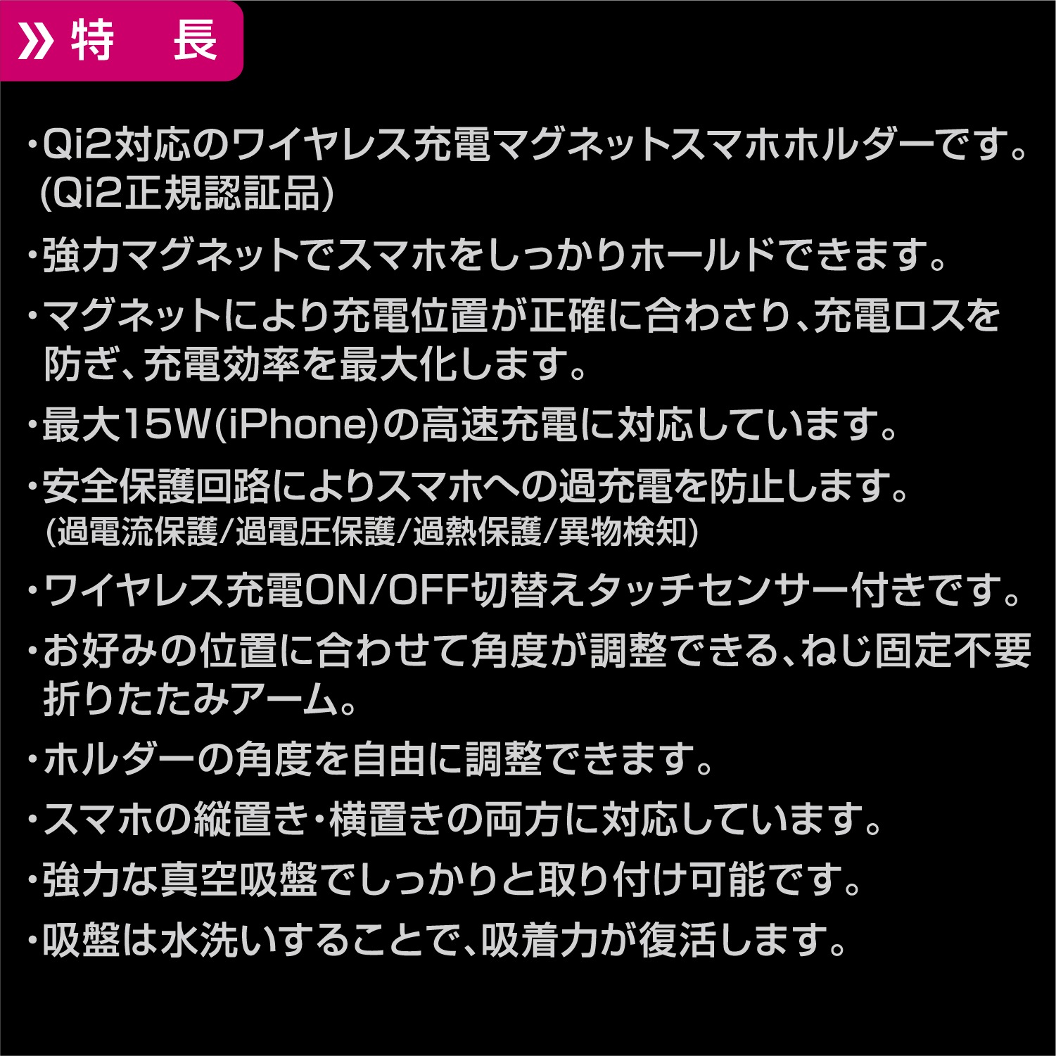 ・Qi2対応のワイヤレス充電マグネットスマホホルダーです。(Qi2正規認証品)