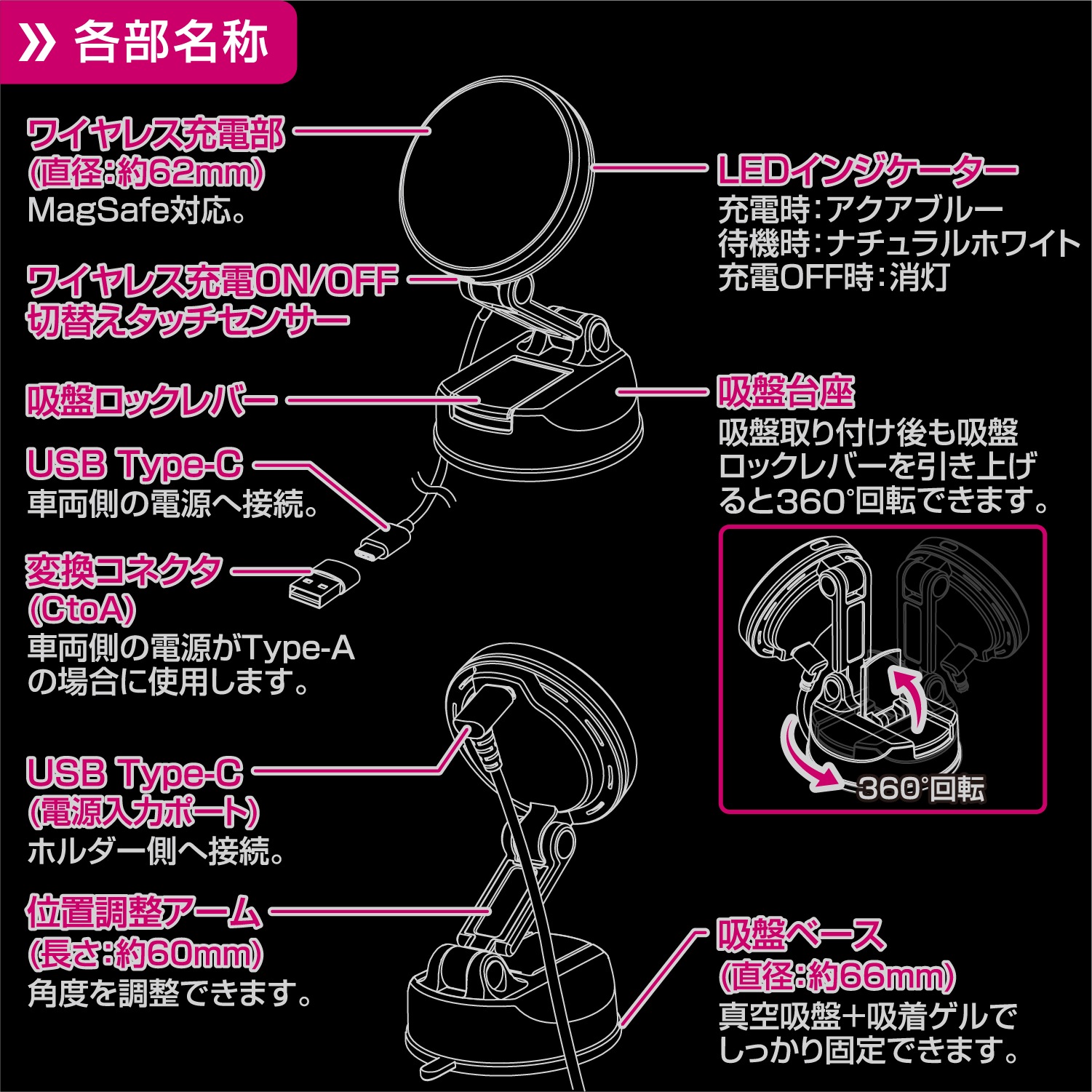 Qi2対応マグネットスマホホルダー 吸盤 PH2641